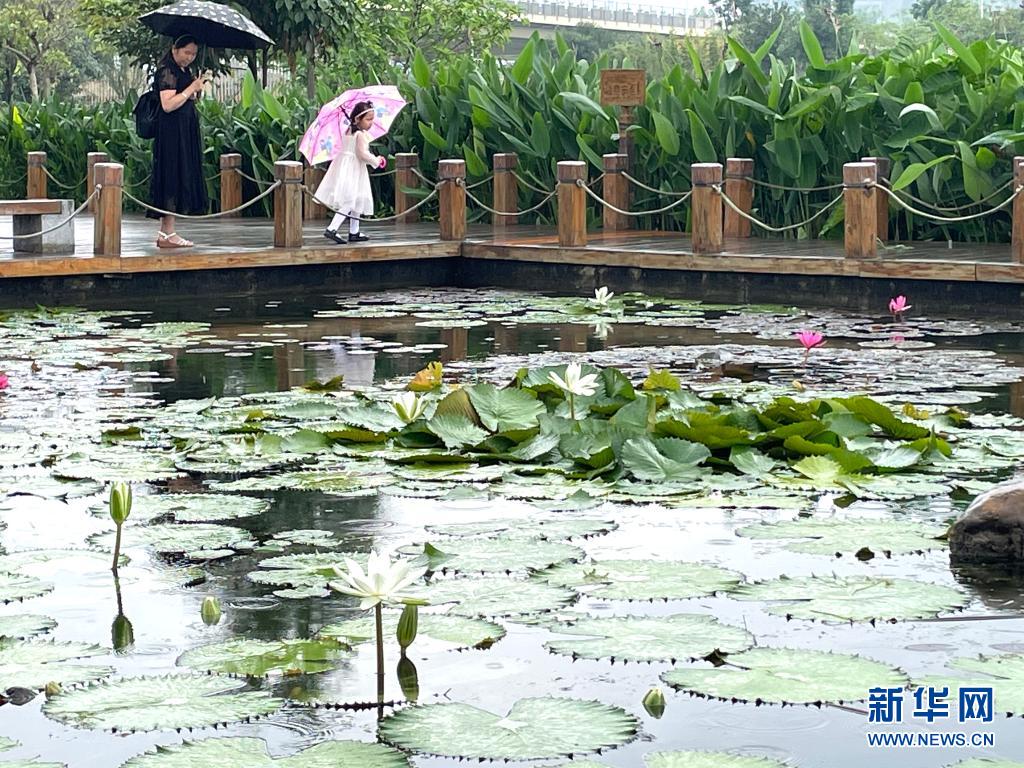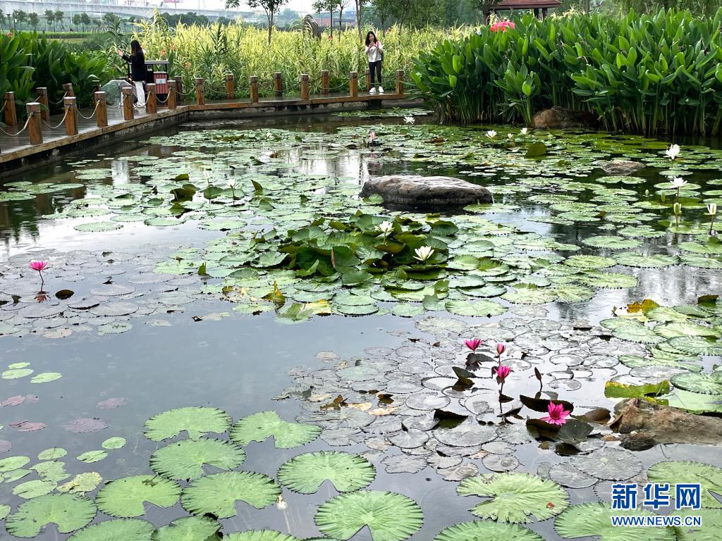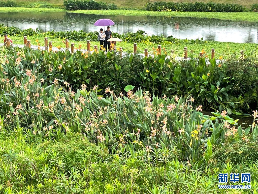 立夏时节,广西南宁市那考河湿地公园内草木吐翠、鲜花斗艳,一派繁茂景象。