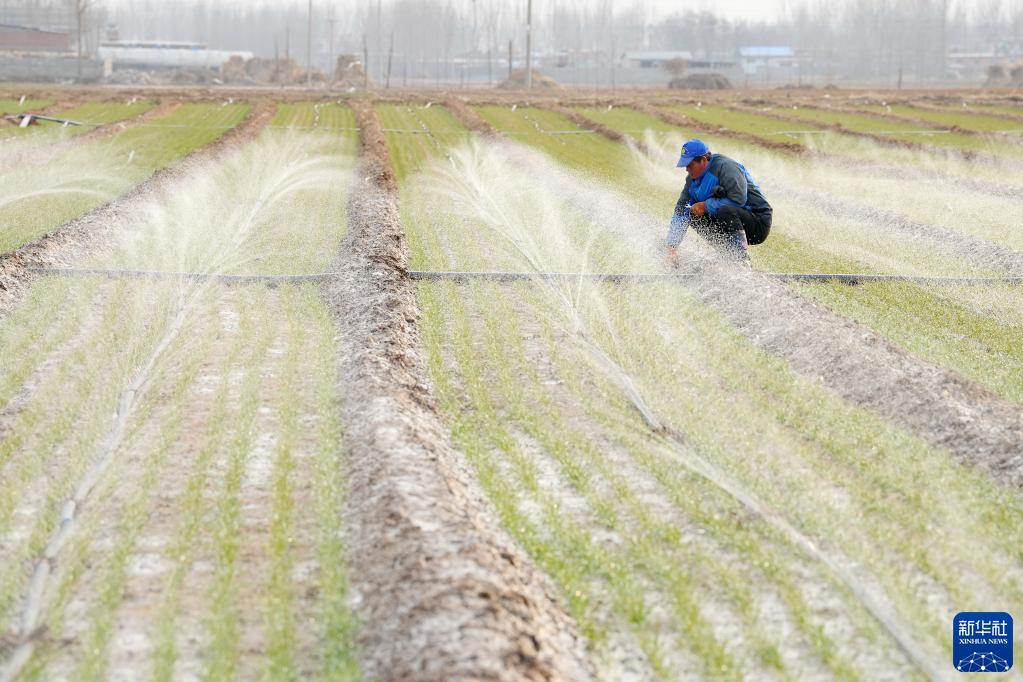 时下,正值河北省冬小麦浇灌封冻水时节,广大农民抢抓农时适时给冬小麦浇水,呈现出一派繁忙景象。